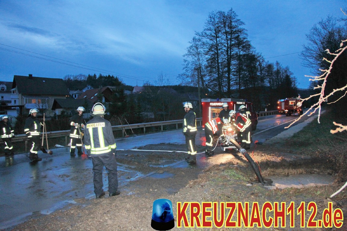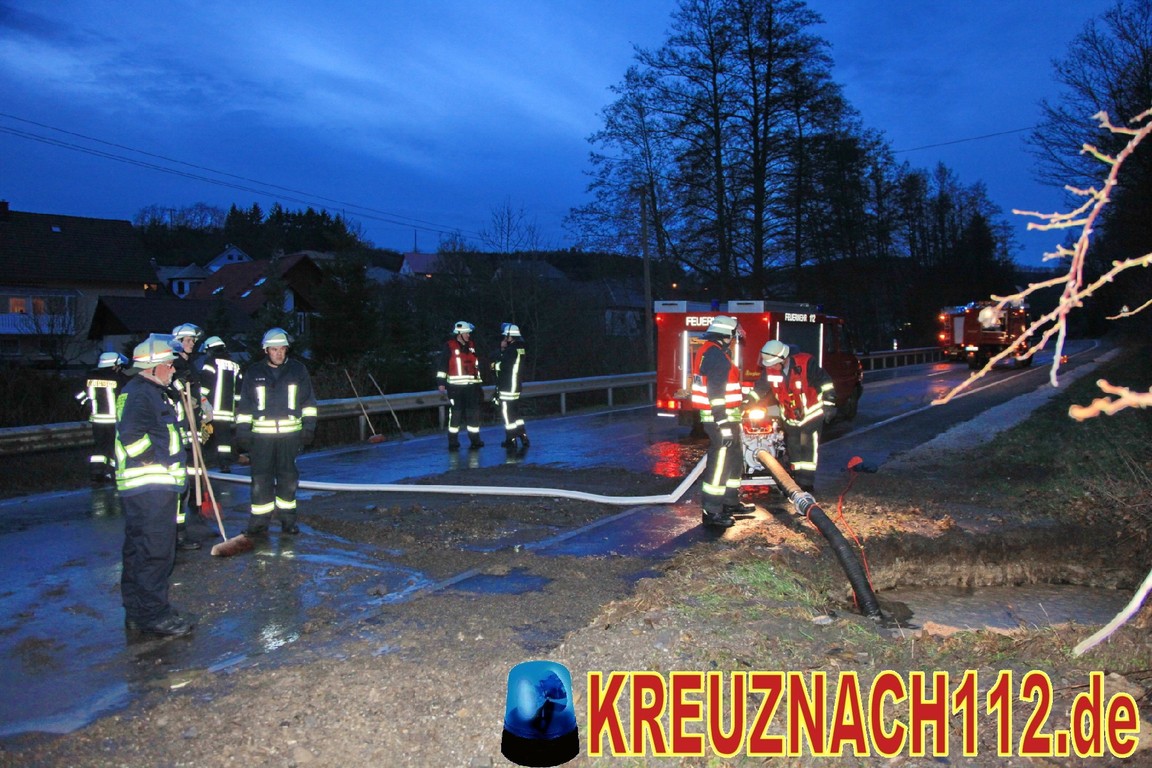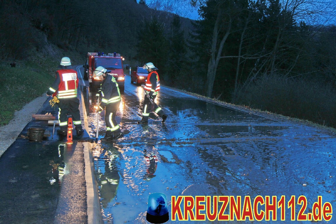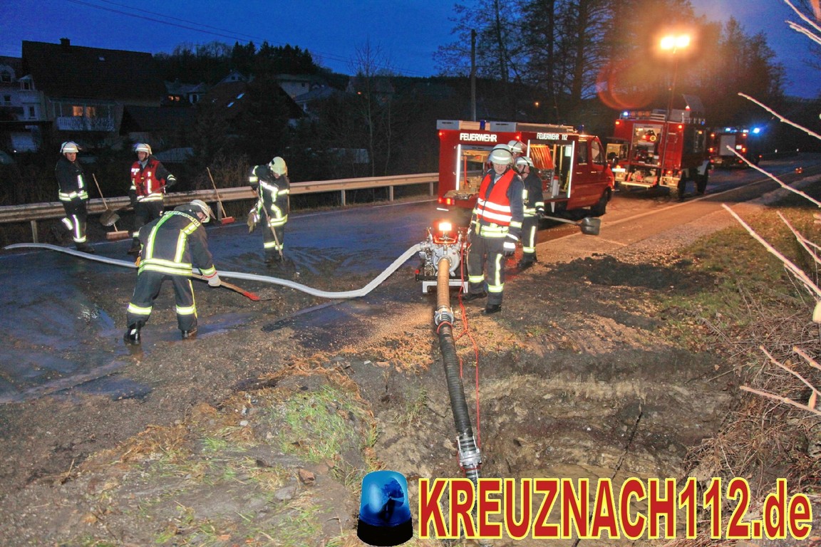 13.04.2013 Ein Wasserrohrbruch sorgte am Samstagabend auf der Landstraße 175 bei Niederwörresbach für erhebliche Behinderungen, sowohl
