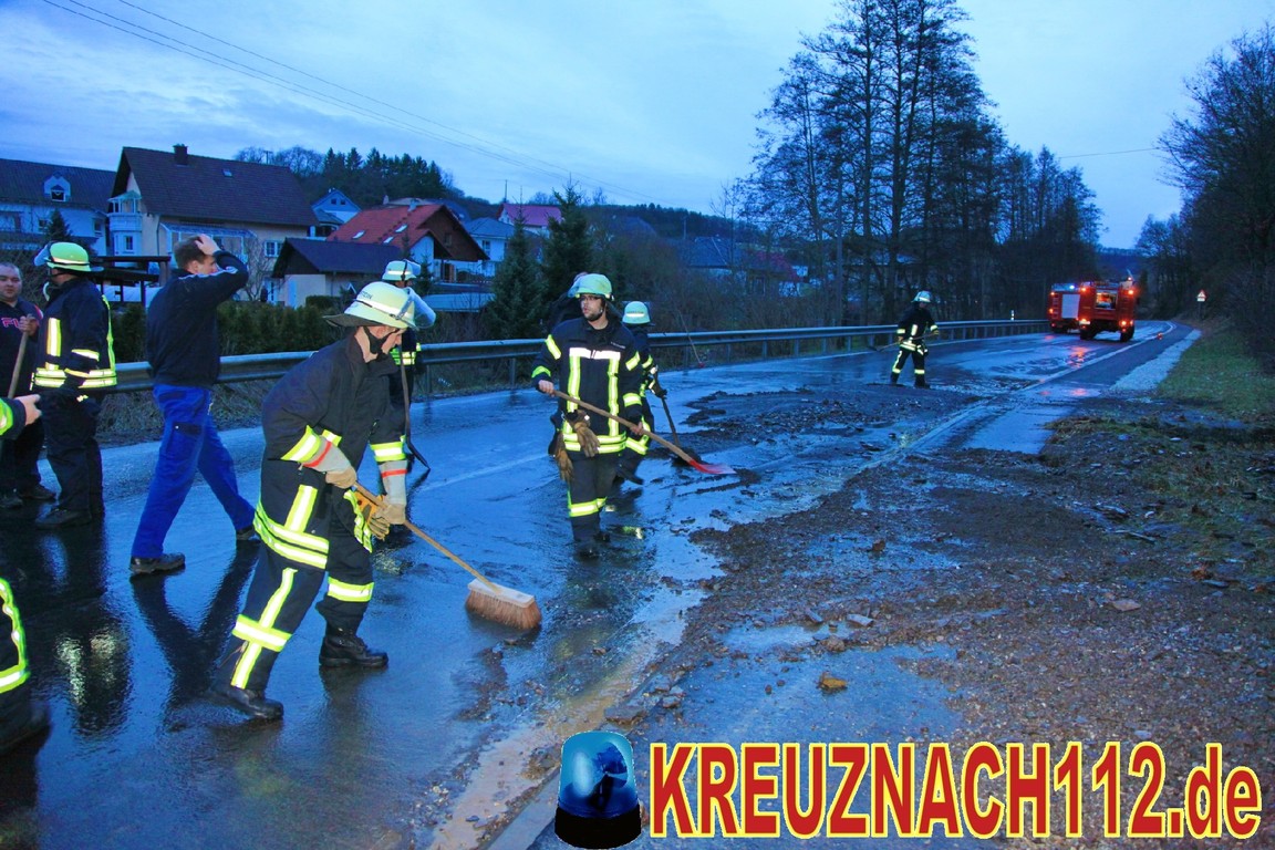 alarmiert und hatte alle Hände voll zu tun. Sie mussten die Einsatzstelle ausleuchten und auf rund 300 m Straße den Sand und Schotter bei Seite schaffen. Deshalb lies Einsatzleiter Michael Piskorz,