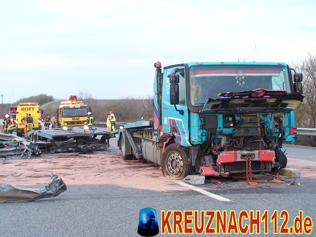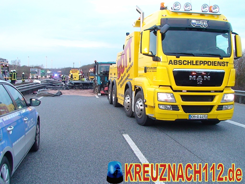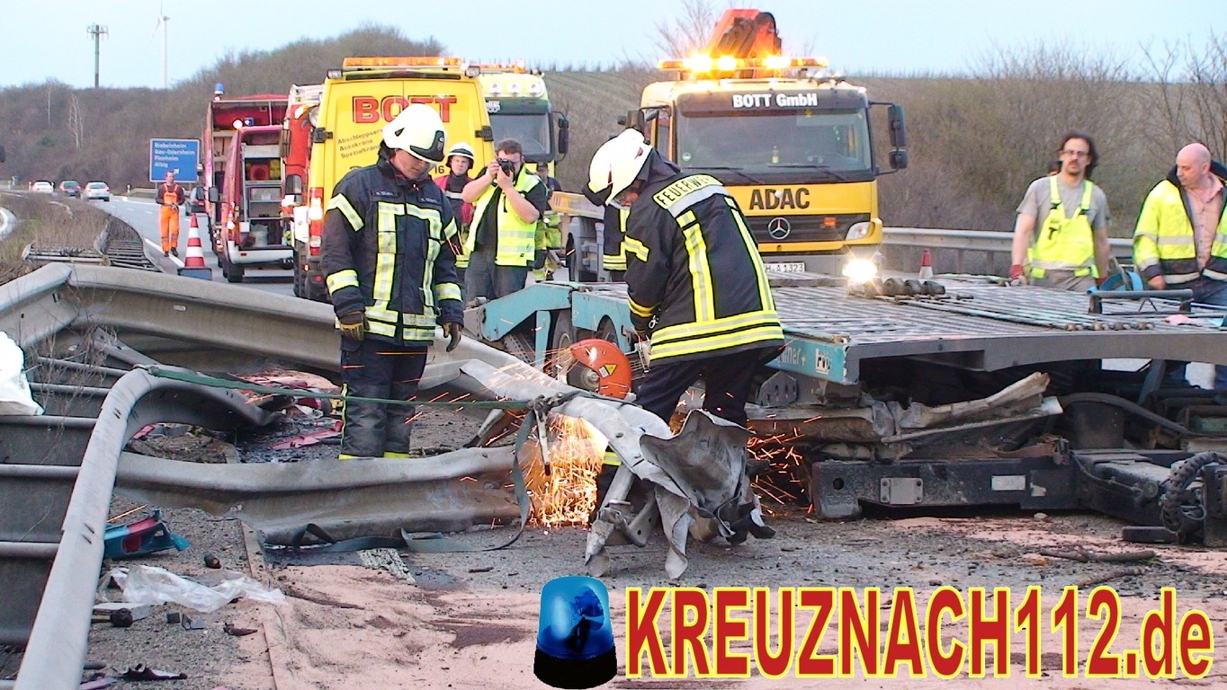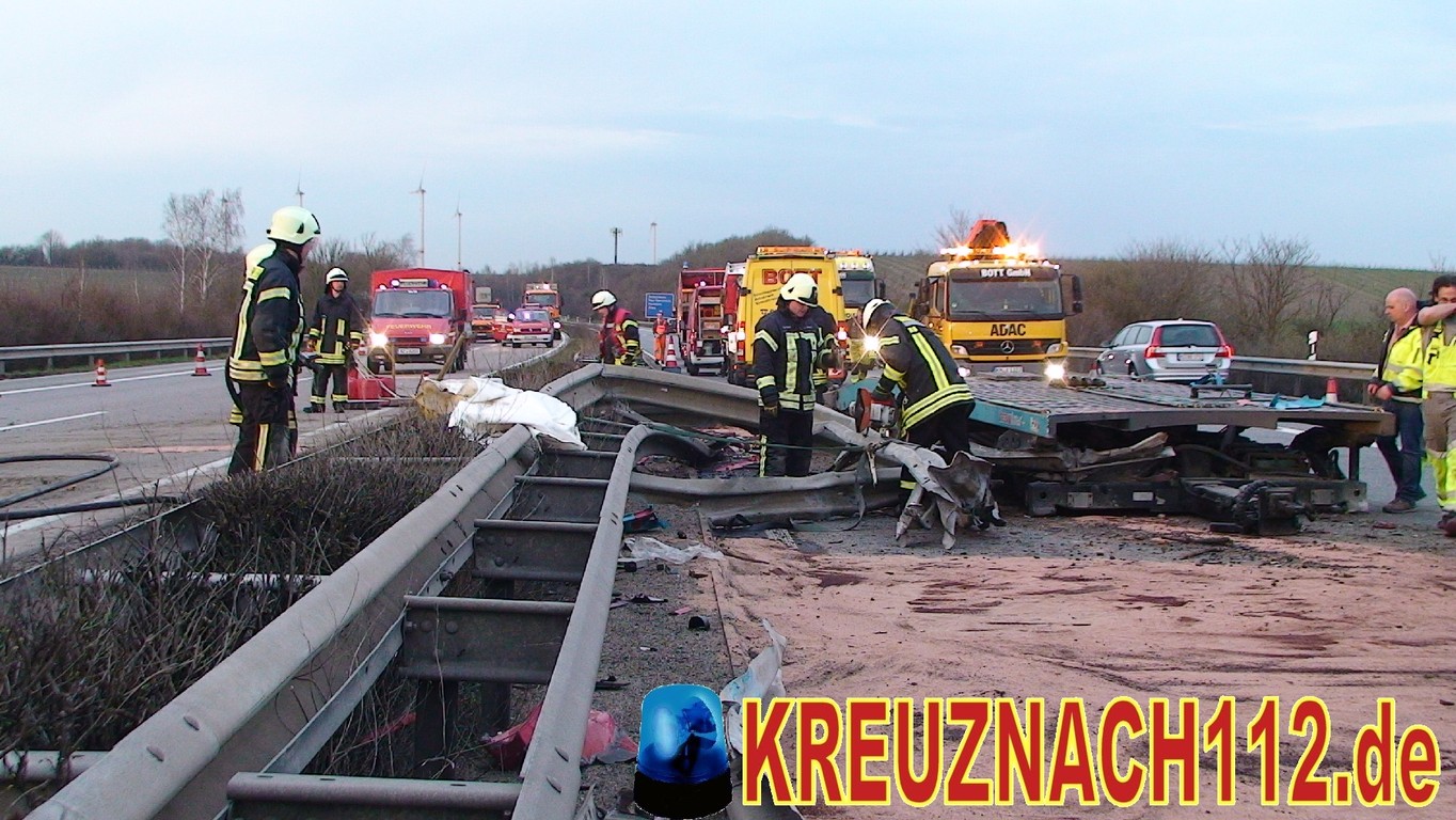 Verkehr wurde über die Anschlussstelle Bad Kreuznach umgeleitet. Die Aufräumarbeiten dauerten bis circa 4 Uhr an. Bis voraussichtlich 8.30 Uhr soll die Autobahn zur Spurensicherung im Hellen noch