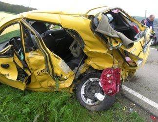PKW-Fahrer wich vor dem Unfallgeschehen mit seinem Fahrzeug nach rechts in den Acker aus. Sein PKW wurde allerdings noch durch umherfliegende Fahrzeugteile beschädigt. Nach Einschätzung von Zeugen
