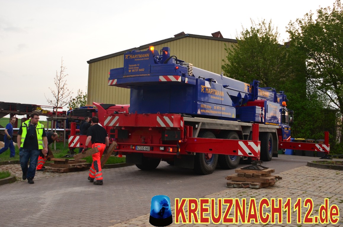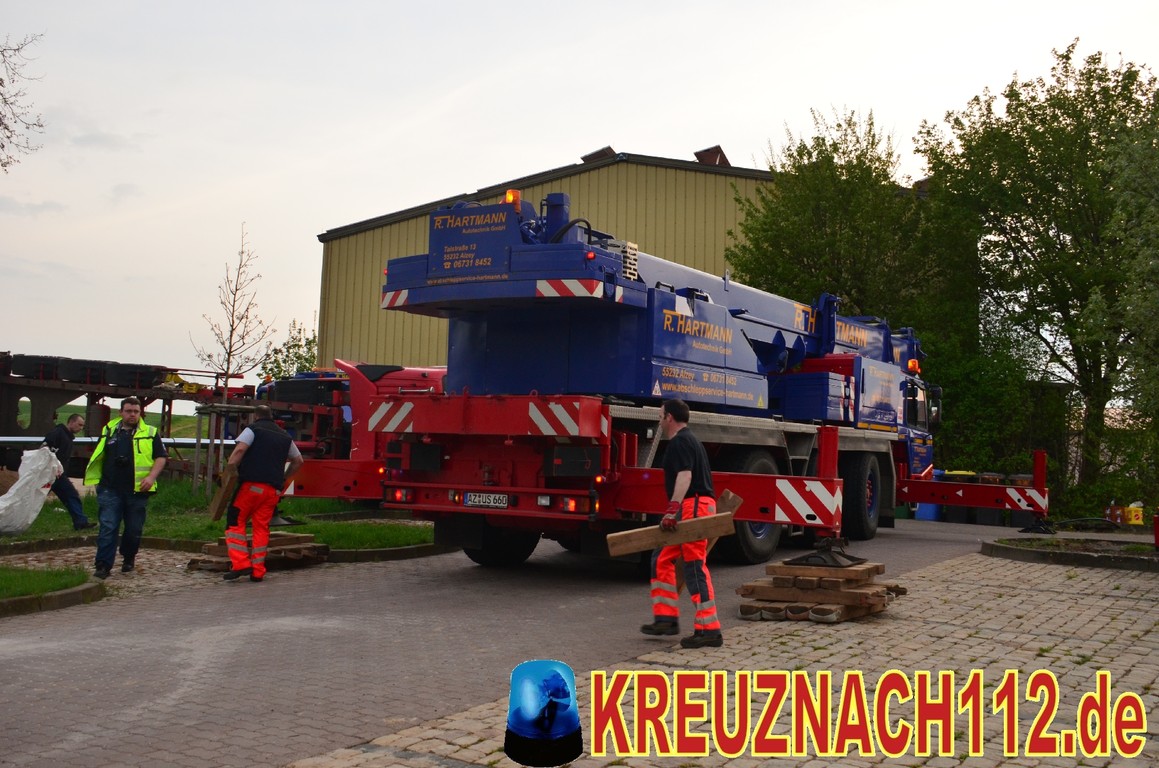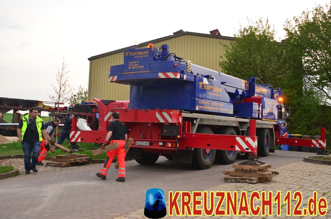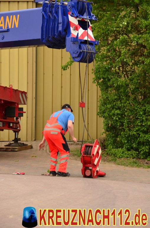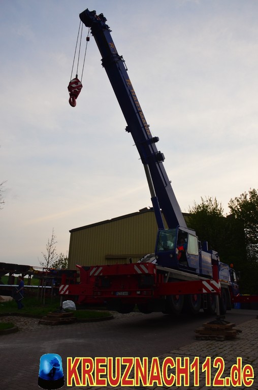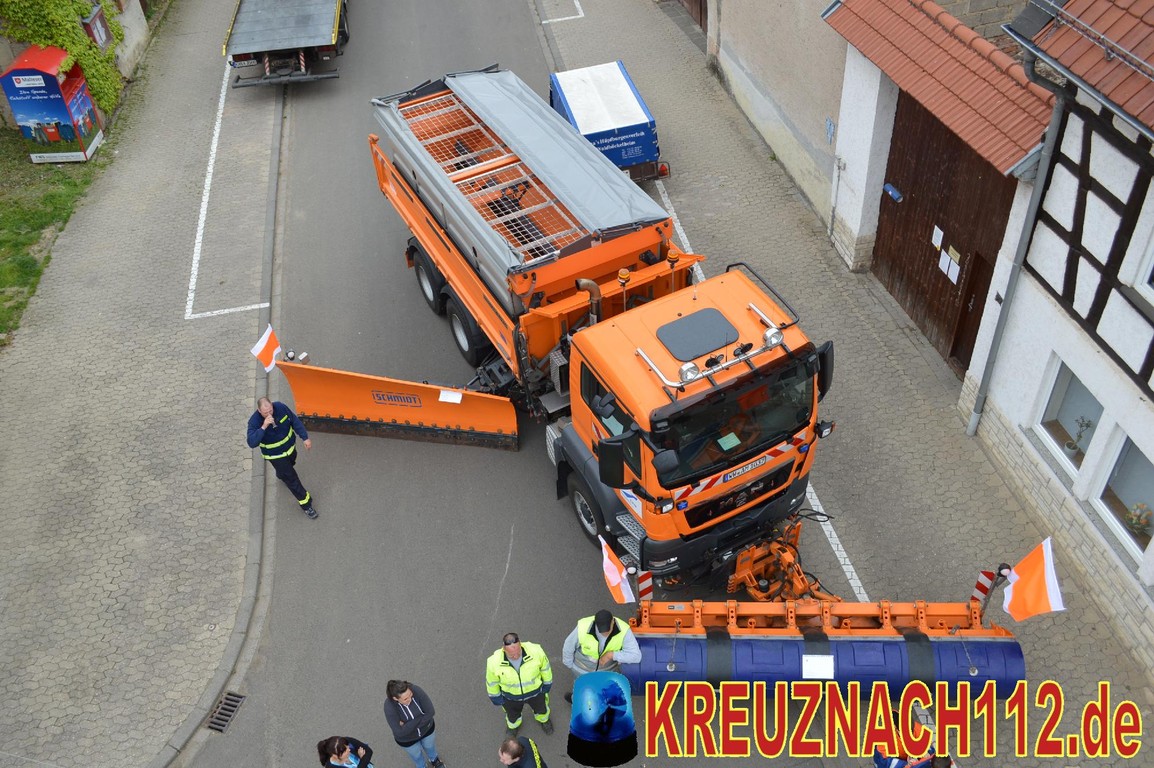 Abladen von Sand fiel ein 40 Toner einer Spedition aus Flonheim am Friedhof um. Dabei Verletzte sich der Fahrer schwer, er musste mit dem Rettungshubschrauber Christoph77 in ein Krankenhaus nach