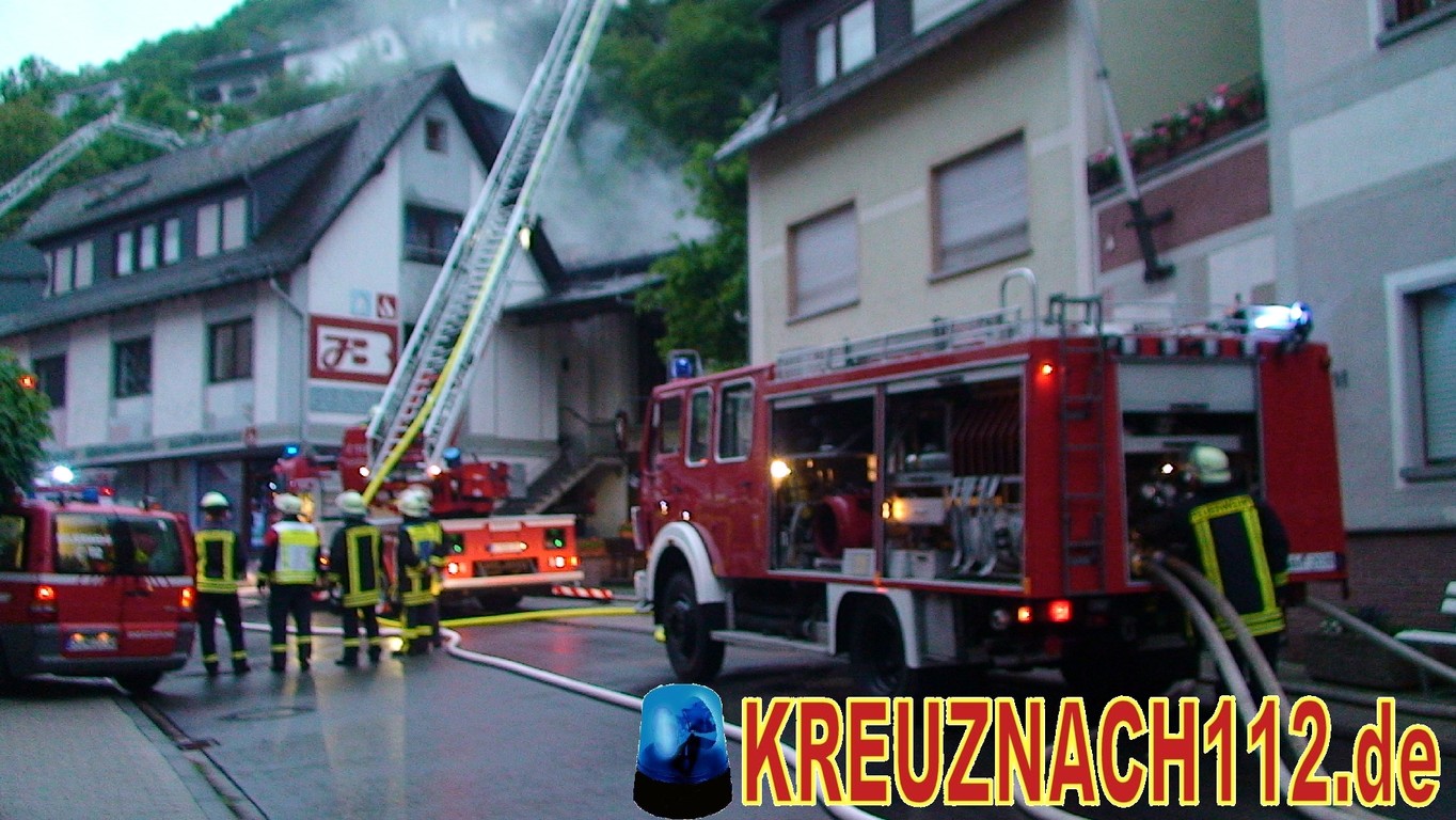 VG St.Goar/Oberwesel alarmiert zu einem Gebäudebrand. Die Feuerwehr aus Simmern wurde zusätzlich mit einer 2. Drehleiter dazu alarmiert. Das übergreifen auf das Wohn und Geschäftshaus konnte