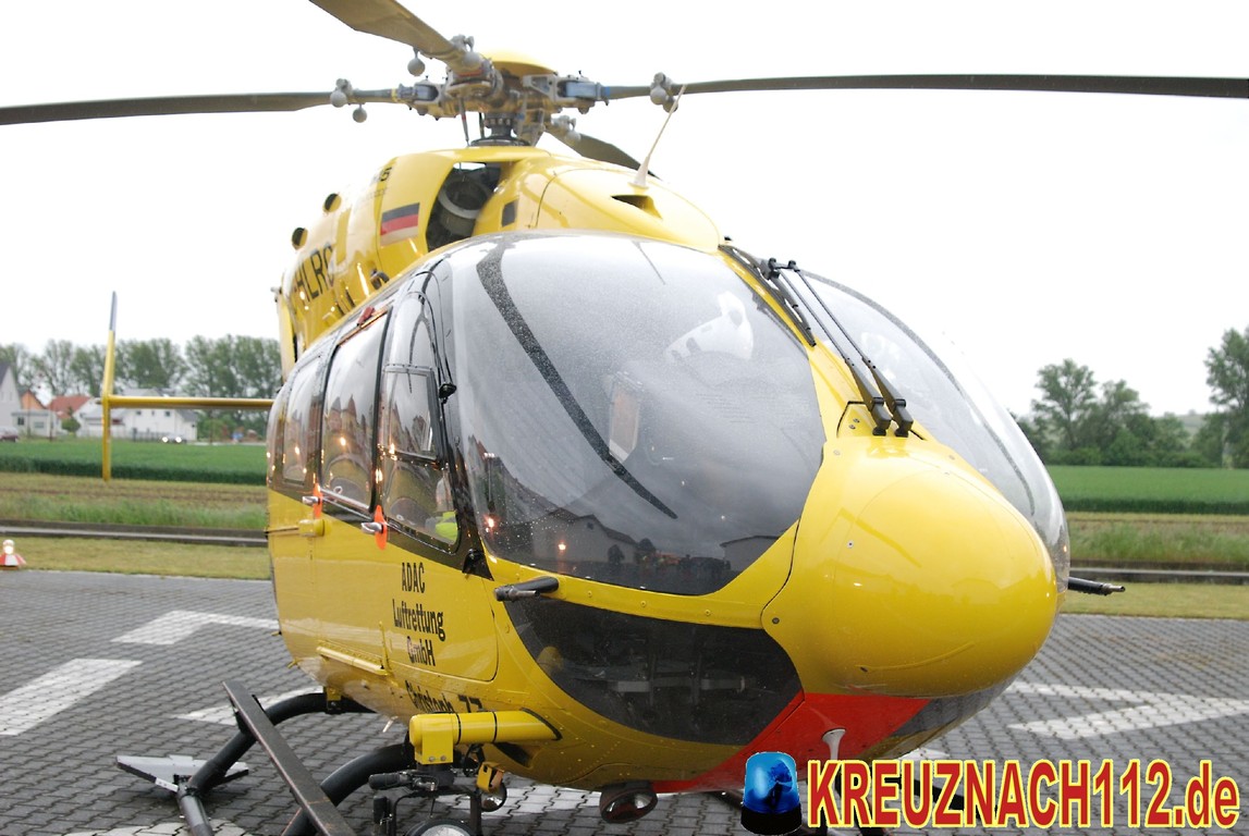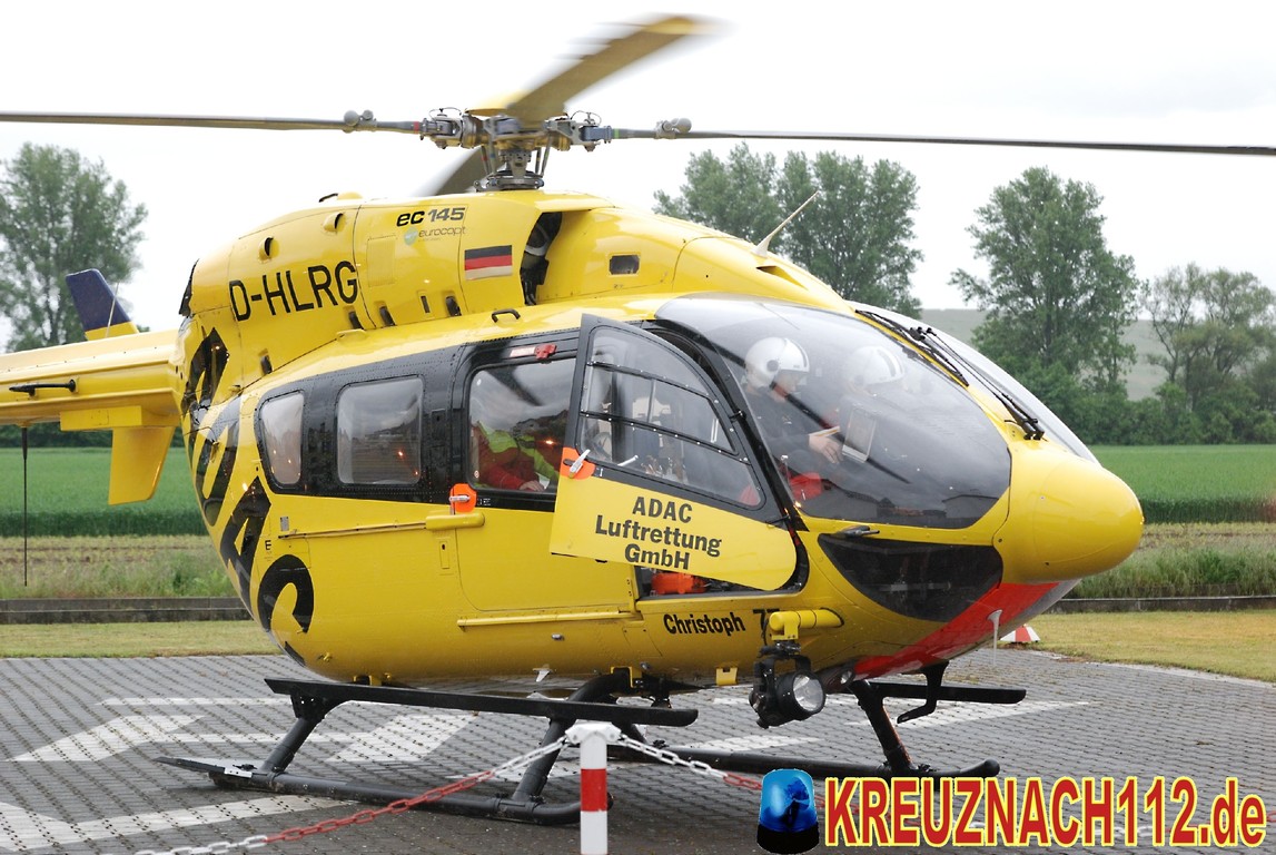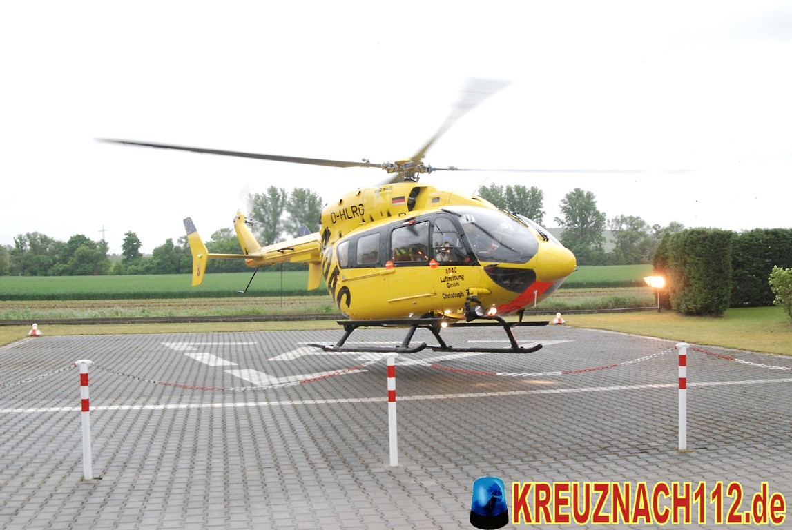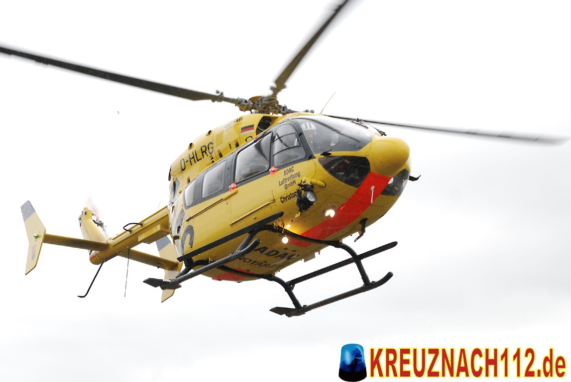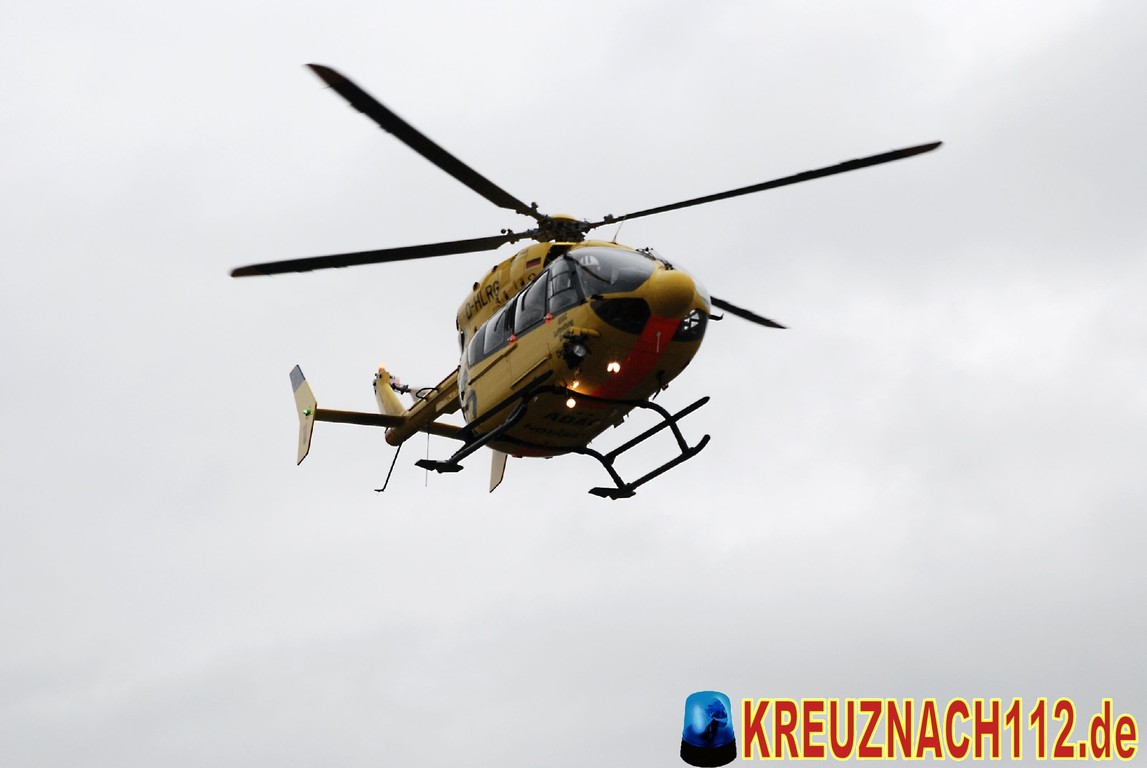 Polizeihubschrauber im Einsatz der eine beteiligte Person suchte.Ein Kombi aus dem Raum Bad Kreuznach fuhr aus bislang ungeklärten Gründen auf einen Kleinwagen aus dem Landkreis Mainz-Bingen auf. Der