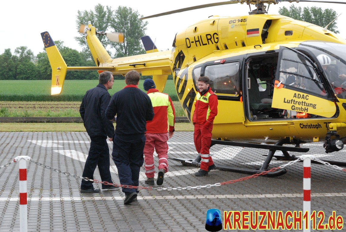 09.05.2013 (tg) Zu einem Motorrad Unfall mit auslaufenden Betriebsstoffen wurde die Feuerwehr Rümmelsheim gerufen. Dieser war in der Ortsmitte. Die Motorradfahrerin kam mit dem Rettungshubschrauber "Christoph77" in die Mainzer Uniklinik. Ebenfalls vor Ort war ein Rettungswagen der Fa. Corneli, dieser übernahm die Erstversorgung.