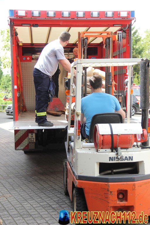 07.06.2013 Reportage Thorsten Henning(THW) Heute sind weitere THW Spezialisten aus Rheinland-Pfalz in die vom Hochwasser betroffenen Gebiete gefahren. Zentraler Sammelpunkt war Bad Kreuznach.Drei Fachgruppen Räumen aus Idar-Oberstein, Ludwigshafen und Neustadt (Weinstrasse) fuhren heute mit Radladern und Spezialfahrzeugen in die vom Hochwasser betroffenen Gebiete. Die 22 Helferinnen und Helfer trafen sich zur gemeinamen Fahrt beim Technischen Hilfswerk Bad Kreuznach. Nach einer kurzen Einweisung fuhren sie gemeinsam in den Bereitstellungsraum ins Hessische Bad Hersfeld. Von dort werden Sie ihren konkreten Einsatzauftrag erhalten. Das genaue Einsatzgebiet und die Einsatzdauer stehen noch nicht genau fest. Trotzdem sind die Räumexperten guter Stimmung und blicken ihrem Einsatz erwartungsvoll entgegen. Geschäftsführer Walter Leipold und Ortsbeauftragter Thorsten Henning verabschiedeten die Kameraden persönlich. Sie wünschten ihnen einen erfolgreichen Einsatz und eine gesunde Rückkehr.„Die Einsätze werden sich noch über Wochen hinziehen. Neben dem Kampf gegen die Fluten sind vielerorts die Aufräumarbeiten bereits in vollem Gange“, sagte THW-Vizepräsident Gerd Friedsam heute in Bonn. Während in den meisten Katastrophengebieten noch mit Hochbetrieb gegen das Hochwasser angekämpft wird, konzentrieren sich die THW-Kräfte in Bayern nun auf die Reparatur der Hochwasserschäden. Im Norden besteht Grund für einen vorsichtigen Optimismus: Die Prognosen für die Küstenregionen wurden nach unten korrigiert.Das Technische Hilfswerk informiert rund um die Uhr auf www.thw.de sowie lokal auf www.thw-kh.de über die aktuelle Einsatzlage.