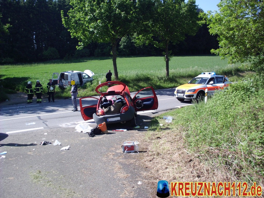 08.06.2013 Kusel. Am Samstag morgen wurden die Feuerwehren Kusel und Konken zu einem Verkehrsunfall auf der B420 zwischen Kusel und Konken alarmiert.