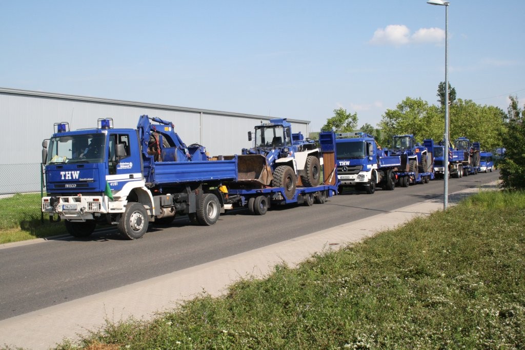 08.06.2013 Heute um 19 Uhr fuhren 7 Helfer des Technischen Hilfswerks Bad Kreuznach in den Hochwassereinsatz. Mit weitern Kameraden aus Alzey, Bingen, Ludwigshafen, Mainz und Simmern fuhren die Helfer in Richtung Magdeburg. Dort ist ein Einsatzschwerpunkt für das THW. Hier befinden sich aktuell bereits rund 250 Kräfte im Einsatz. Die Bad Kreuznacher gehören zu den weiteren 250 Kräften, die aus Hessen, Rheinland-Pfalz und dem Saarland angefordert wurden, um die Deiche zu verteidigen und um Einsatzstellen an den gefährdeten Deichen auszuleuchten.Erstes Ziel ist der Bereitstellungsraum in Bad Hersfeld. Danach geht es unmittelbar weiter in Richtung Magdeburg. Die Einsatzdauer ist zunächst für rund eine Woche vorgesehen. In dieser Zeit werden die ehrenamtlichen Kräfte von Ihren Arbeitgebern freigestellt. Unterwegs sind sie mit 7 Fahrzeugen, die teilweise über Transportkapazitäten verfügen um beispielsweise Sandsäcke zu transportieren.