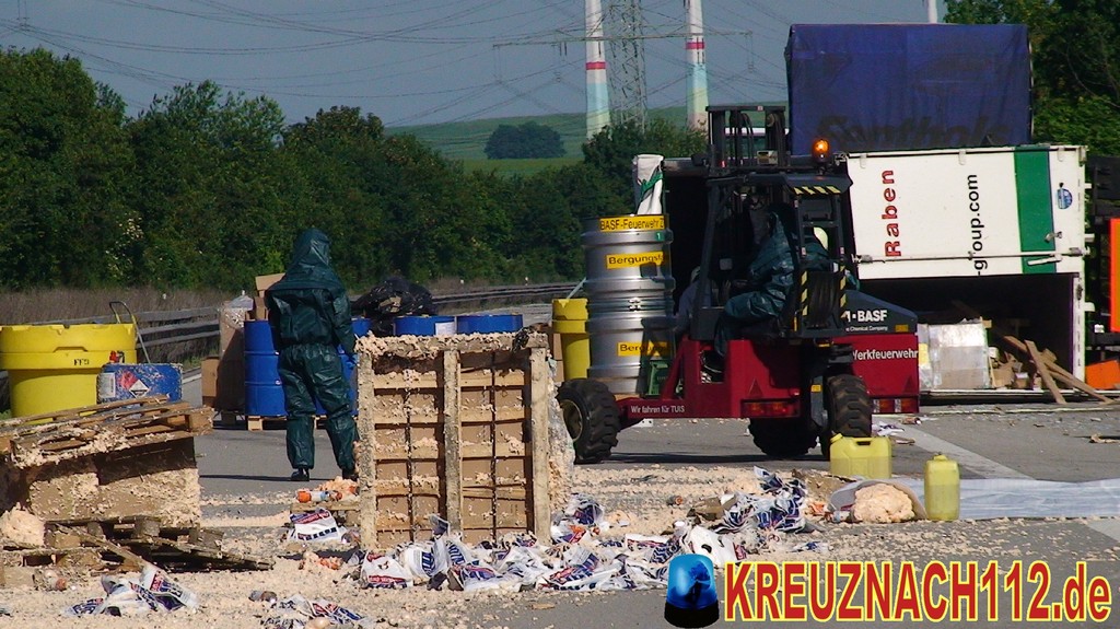 Fahrbahn ausgehärtet. Die Aufräum- und Bergungsarbeiten werden vermutlich noch bis in die späten Nachmittagsstunden andauern. Die Fahrbahn Richtung Ludwigshafen ist wieder freigegeben, Richtung
