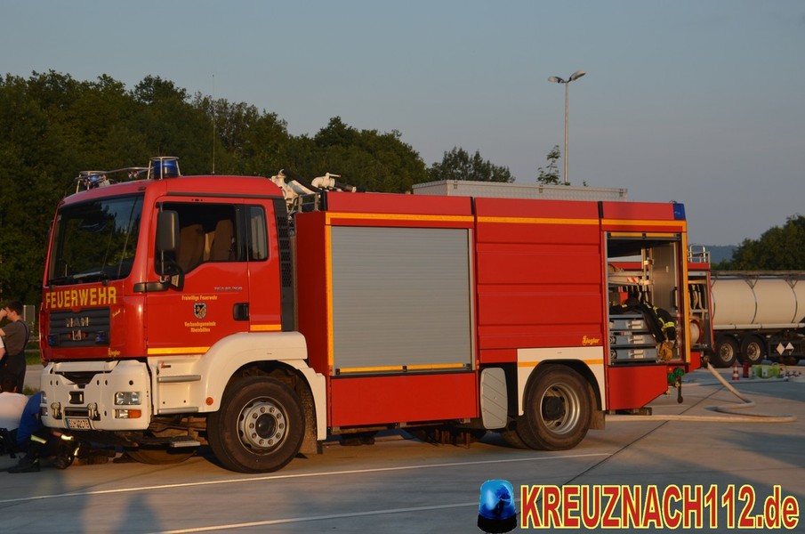 Auf dem Rastplatz Struth bei Rheinböllen ist aus einem Tank LKW Schwefelsäure ausgetretten. Die Feuerwehr Rheinböllen mit ihrer