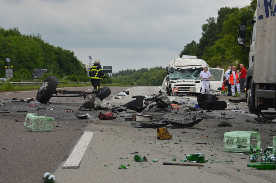 Ein schwerer Verkehrsunfall ereignete sich in den frühen Morgenstunden auf der A61 bei Bornheim. Nach dem Überholen scherte ein Lkw so knapp vor einem anderen Lastzug
