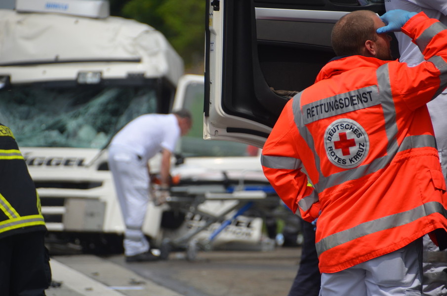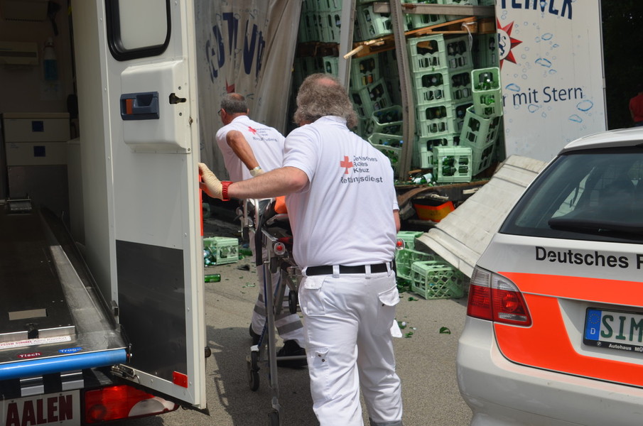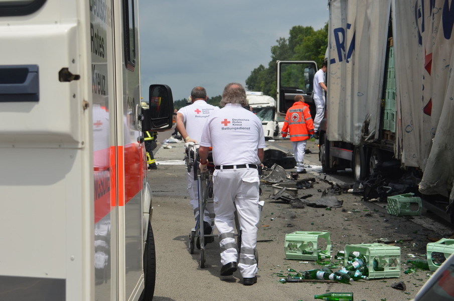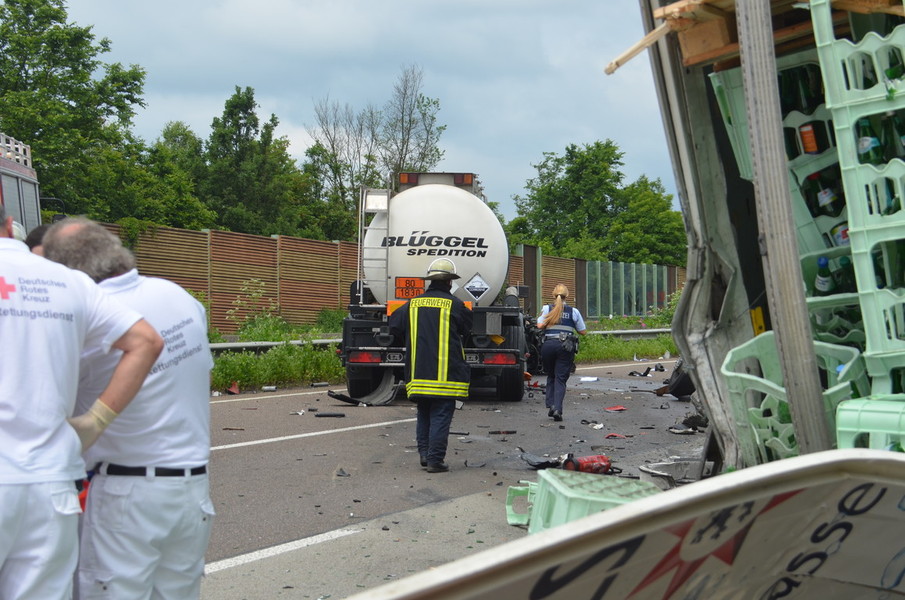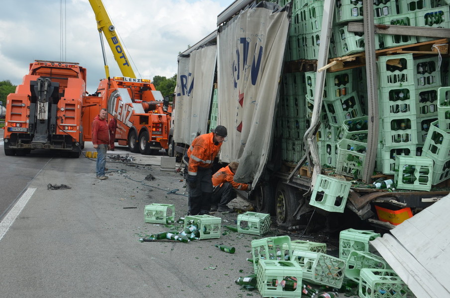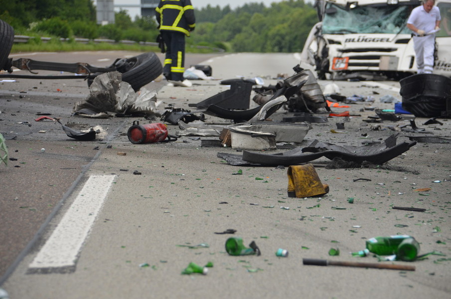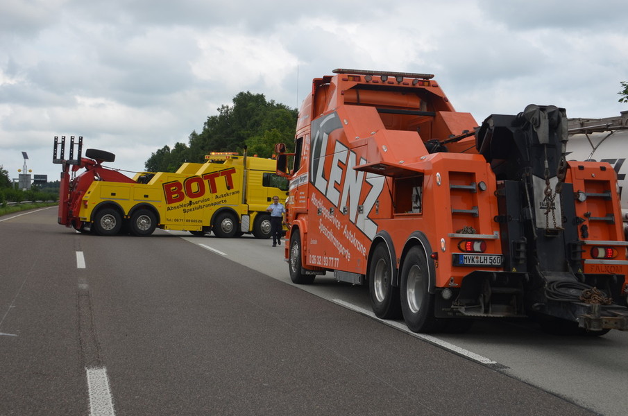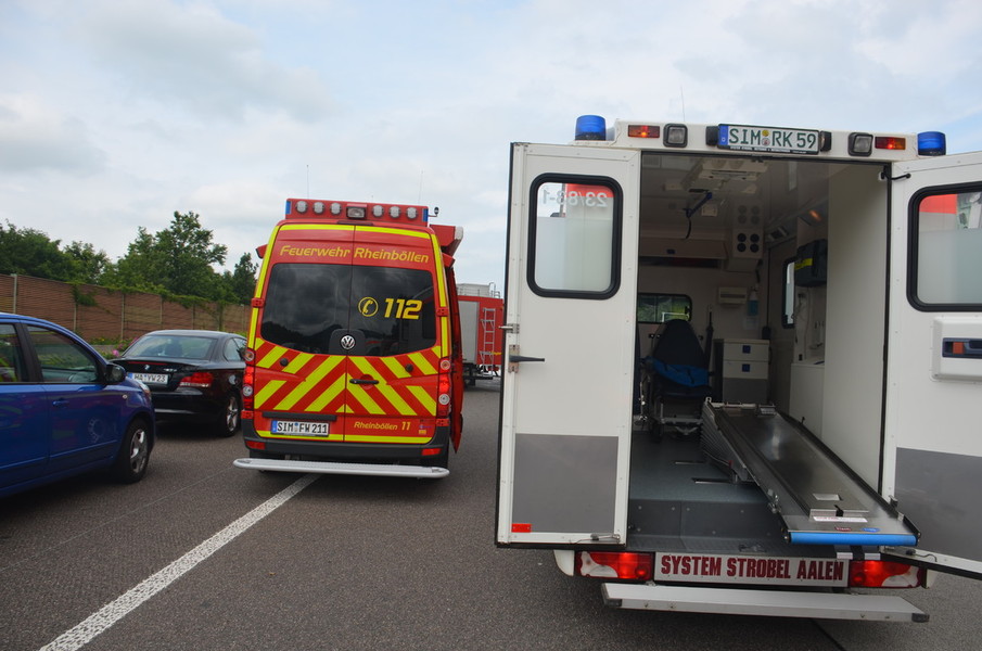 versorgt. Ein Krankentransportfahrzeug aus dem Raum Stuttgart das zufällig im Stau stand leistete erste Hilfe. Auf dem Standstreifen stand ein LKW der eine Panne hatte, als der Fahrer das Warndreieck