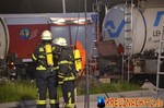 Gefahrstoffeinheit war vor Ort und dichtete die Leckage ab. Die Werkfeuerwehr Boehringer wurde von der Spedition beauftragt das Medium umzupumpen in einen anderen Tankzug. Die FW Rheinböllen stellte