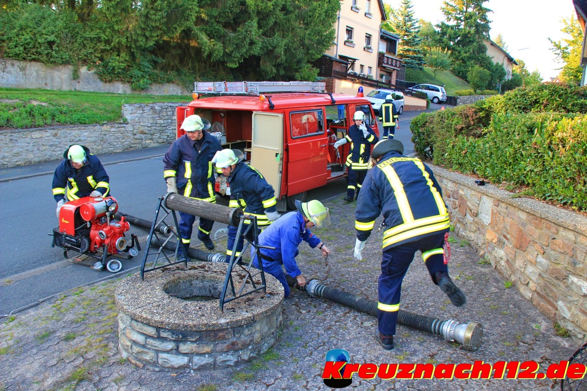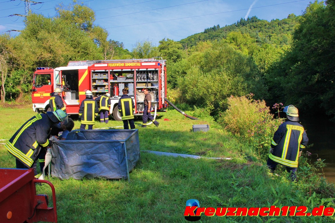 Im Ernstfall muss alles klappen. Da müssen die Feuerwehrleute nicht nur in kürzester Zeit am Einsatzort sein sondern auch schnell Löschwasser am Strahlrohr haben. Da der Löschwasservorrat im Einsatzfahrzeug begrenzt ist und nicht überall Hydranten zur Verfügung stehen, wurde die „Wasserentnahme aus offenen Gewässern“ geübt. Dies konnte man sich vergangenem Sonntag bei der Übung der Freiwilligen Feuerwehr Simmertal ansehen. Bernd Hill stellv. Wehrführer der Einheit Simmertal hatte die Übung ausgearbeitet und erklärte:„Das Simmertal an der Nahe und dem Kellenbach liegt, das durch Simmertal der Apfelbach fließt, der 2 Entnahmestellen ( am Löschteich und am ehemaligen Spargeschäft ) bietet.“Im Zuge dieser Übung wurde versucht, ob man mittels der Tauchpumpe genügend Wasser aus einem offenen Gewässer befördern kann, um einen Löschangriff bewerkstelligen zu können. Mit dem geförderten „Löschwasser“ wurde ein imaginärer Brand bekämpft. In den vergangenen 2 Wochen hatten die Feuerwehen in der Umgebung rund 10 Flächenbrände, bei denen die Wasserversorgung und Wasserentnahme eine große Rolle spielt.
