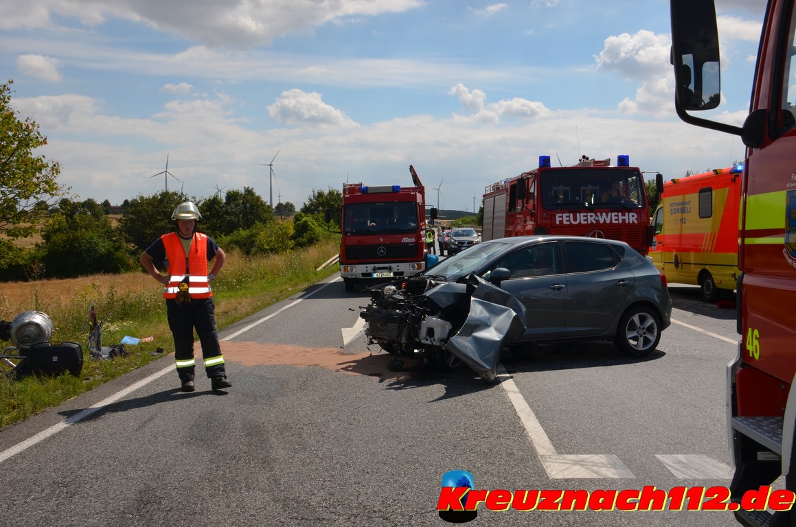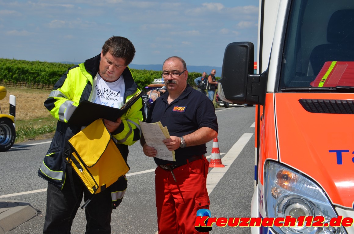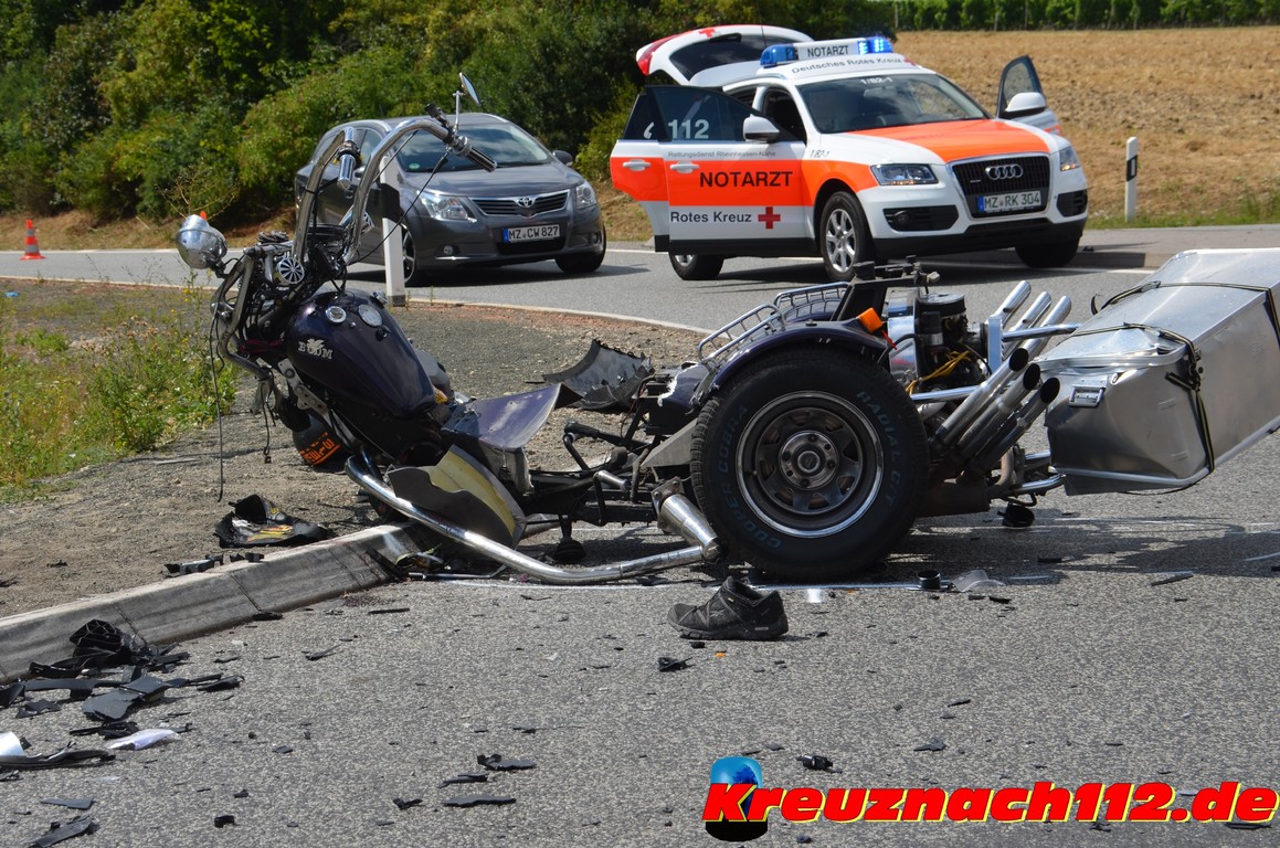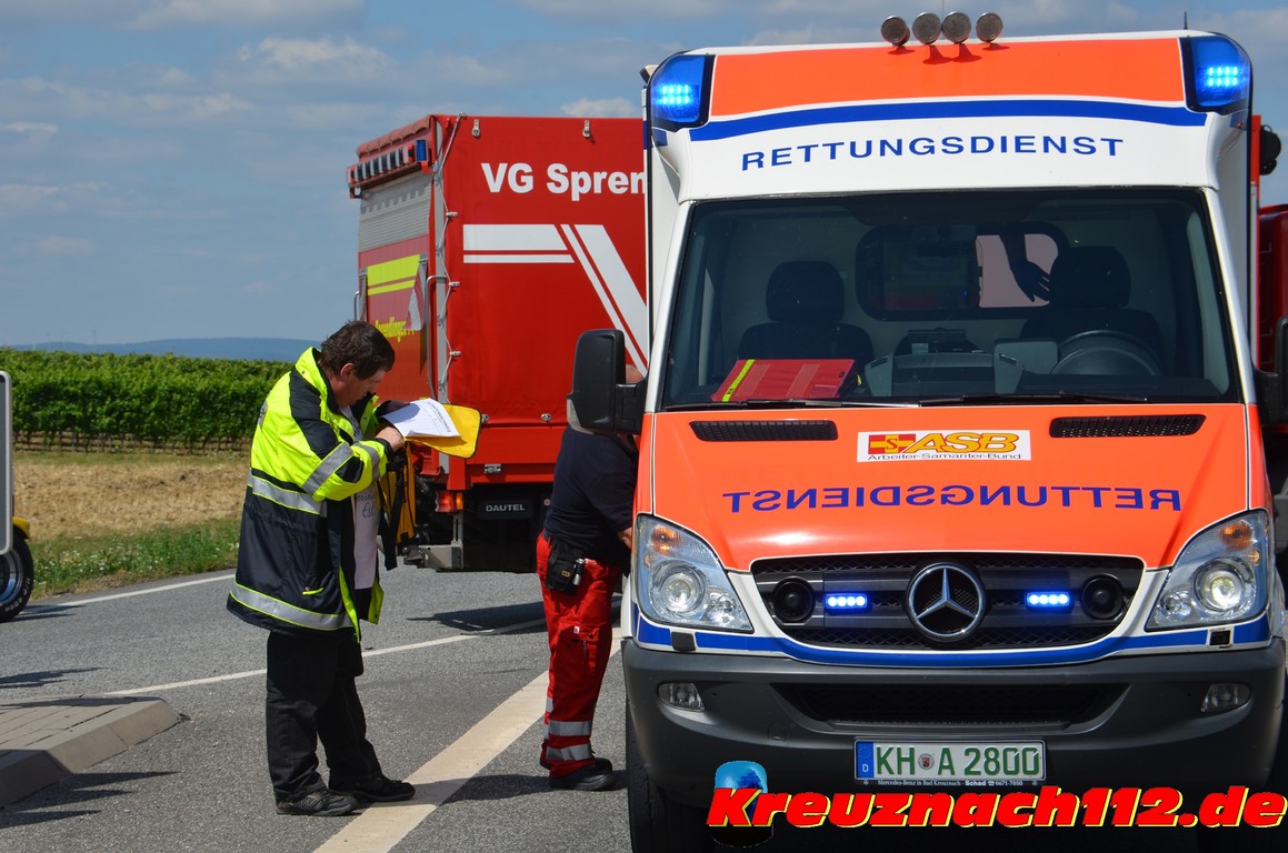 einem weiteren schweren Unfall mit zwei Schwerverletzten und zwei Leichtverletzten. Gegen 12.45 Uhr fuhr ein Trike-Fahrer (57) die B50 aus Gensingen kommende in Richtung Gau-Bickelheim. Eine