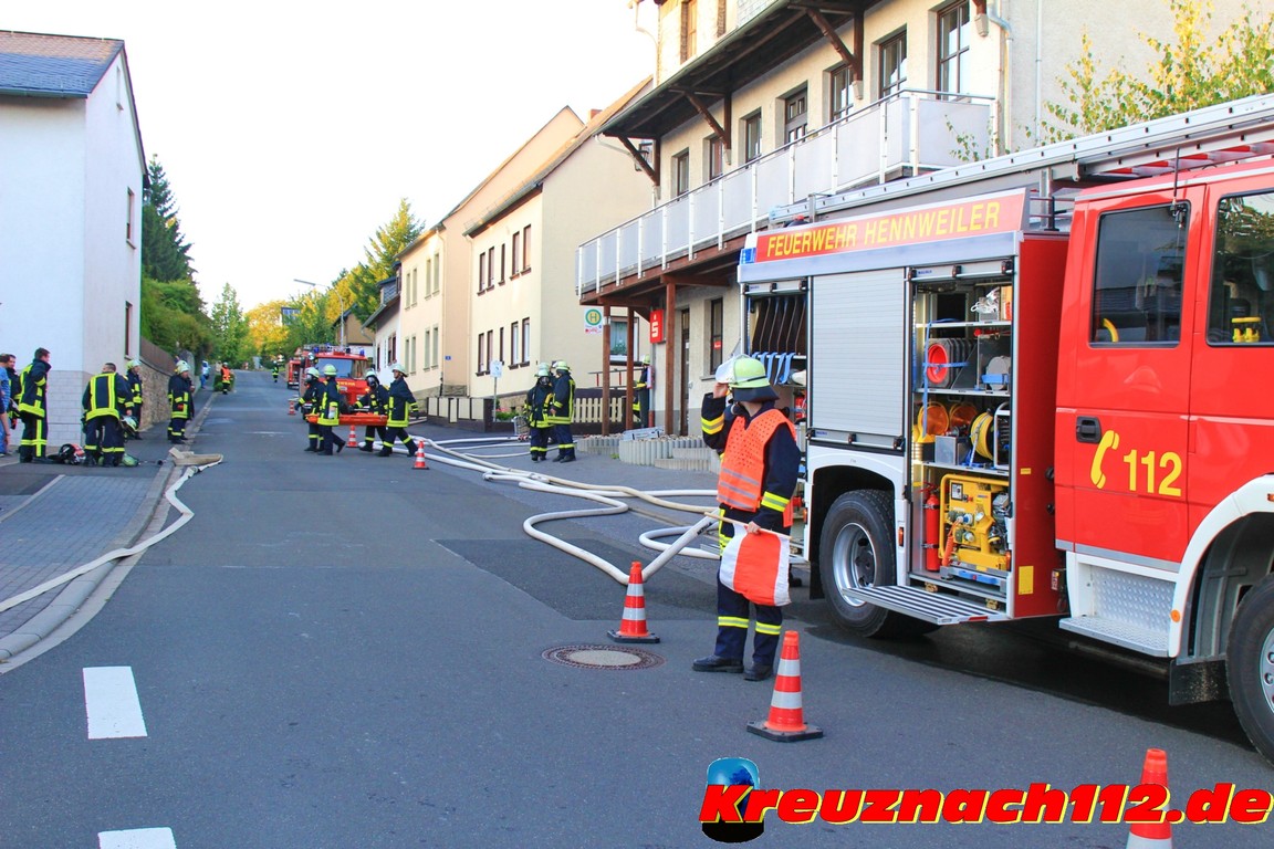 „Brandmeldung Lützelsoonstraße 16 in Hennweiler“, so ertönte es aus den analogen Meldeempfängern der Einheiten Hennweiler, Oberhausen, Hahnenbach und Schneppenbach. Die