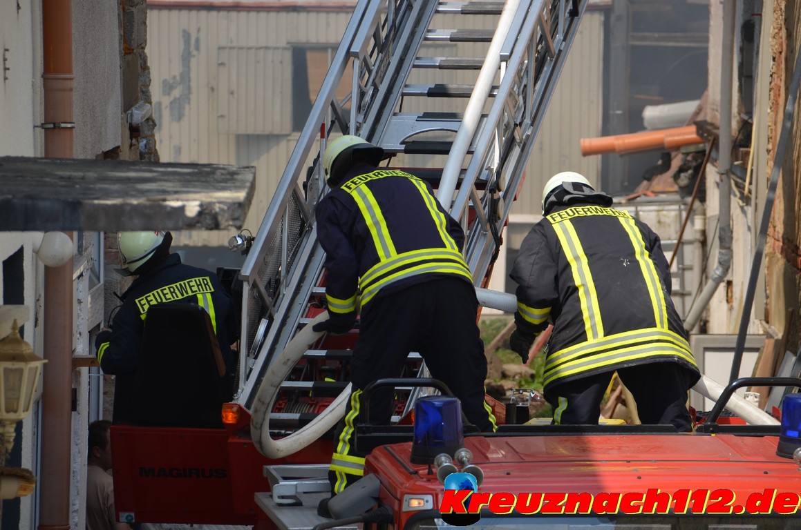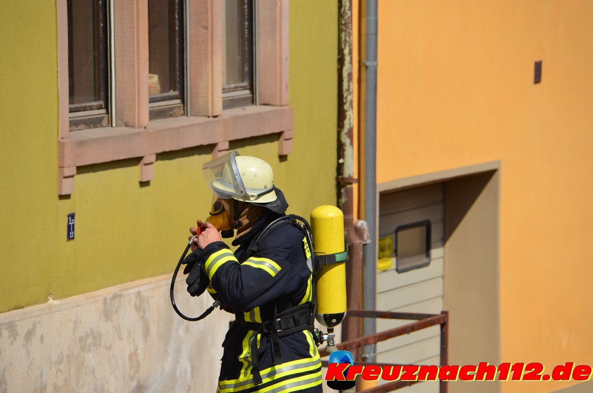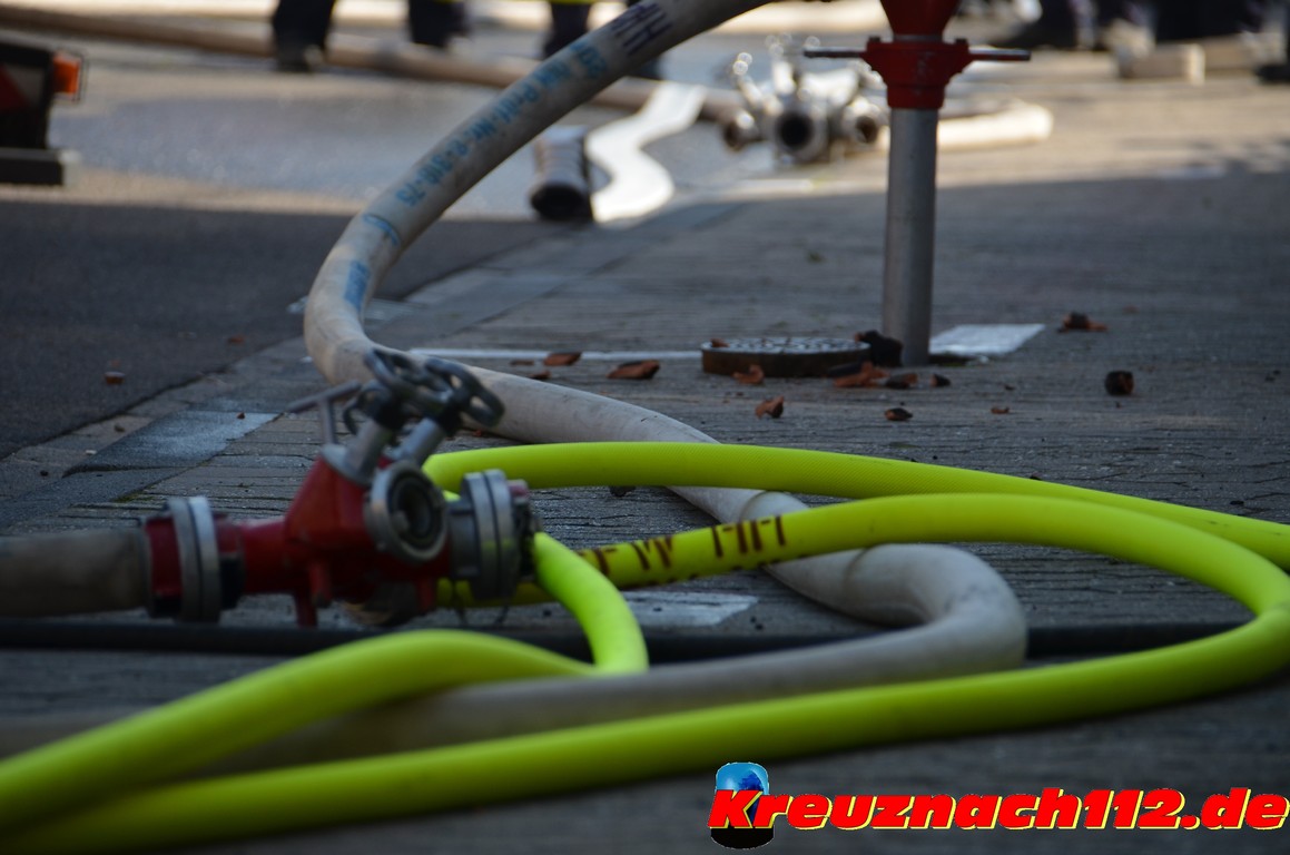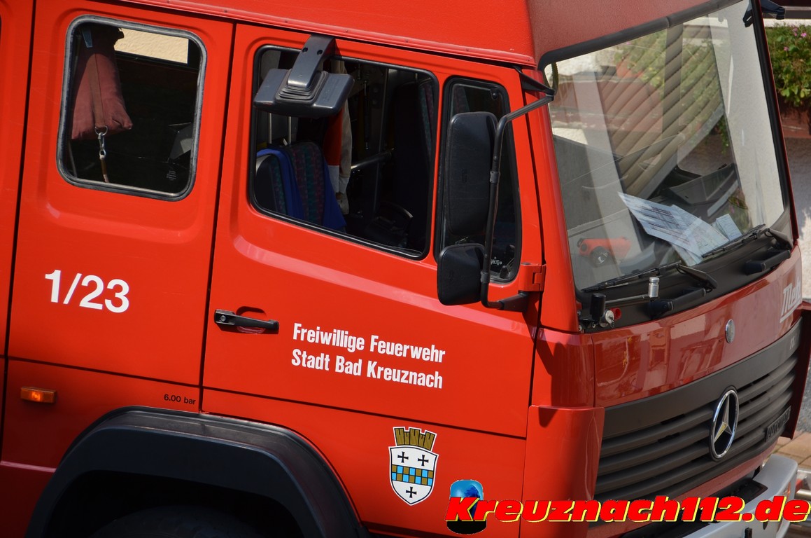 Drehleiter aus der Stadt Bad Kreuznach angefordert werden. Mit viel Mühe und geschick konnte man diese einsetzen, wegen der engen Bebauung.