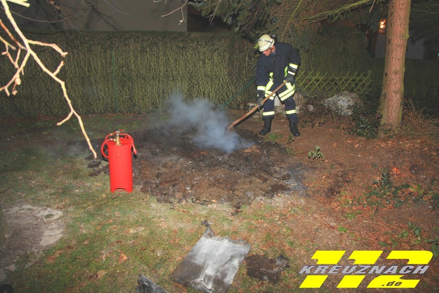 Mit vier Fahrzeugen und rund 20 Mann rückten die Feuerwehren Hennweiler und Oberhausen am Freitagmorgen um 4:20 Uhr zur Kirner Straße in Oberhausen aus, weil ein Feuerschein und Rauchentwicklung gemeldet wurde, letztendlich aber nur ein Komposthaufen Feuer fing. Nachbarn hatten die Retter alarmiert, der Brandort war auf Grund der Rauchentwicklung unklar. Die Polizeistreifen die zurzeit hohe Präsenz in den Ortschaften von Kirn-Land zeigen, war sehr schnell zur Stelle und löschte den Brand mit einem Feuerlöscher. Einsatzleiter Helmut Tressel ließ die Brandstelle noch gut Wässern, gegen eine erneute Entzündung. Die Brandursache konnte zunächst nicht geklärt werden.