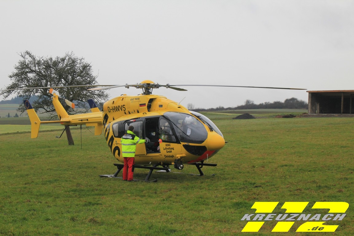 wurde dabei eingeklemmt und schwer verletzt. Feuerwehreinheiten aus Kirn, Bergen und Herrstein waren mit 30 Mann im Einsatz, ebenso der Rettungshubschraubr Christoph77 und der Rettungsdienst mit