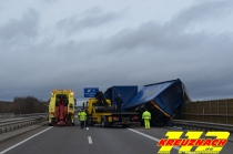 19.01.2015Rheinhessen/A 61 - Gemarkung Westhofen, LKW gerät nach Unfall mit PKW in