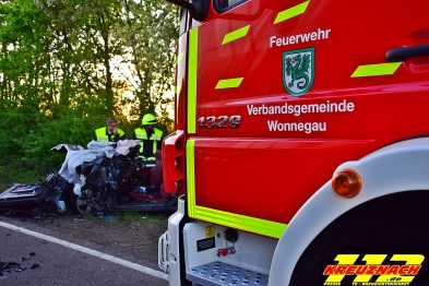 05.04.2017 Verkehrsunfall mit tödlich verletzter Person Reportage Thorsten Gerhardt Eine PKW Fahrerin befuhr heute, gegen 8:12 Uhr, mit einem BMW die Landestraße 414 aus Richtung Ober-Hilbersheim kommend in Fahrtrichtung Wörrstadt. Kurz vor dem „Wolfsheimer Sender“ kam das Fahrzeug aus bisher unbekannten Gründen nach links von der Fahrbahn ab und stieß gegen einen Baum. Die Fahrerin, deren genaue Personalien noch nicht feststehen, wurde im Fahrzeug eingeklemmt und verstarb an der Unfallstelle. Die Bergung des Fahrzeuges dauerte mehrere Stunden. Ein Gutachter wurde mit der Erstellung eines Gutachtens beauftragt. Im Einsatz waren Beamte der Polizeiinspektion Bingen und der Polizeiwache Wörrstadt, zirka 40 Kräfte der Feuerwehren Partenheim, Wörrstadt, Ober-Hilbersheim und Saulheim, die Straßenmeisterei und Rettungsdienste.