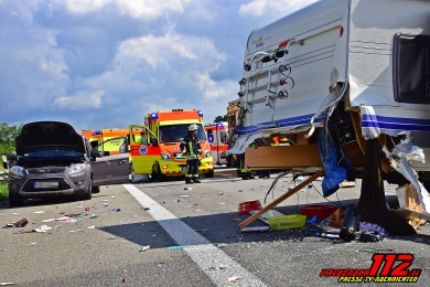 03.06.2017 Schwerer Verkehrsunfall A61 Sprendlingen Reportage Thorsten Gerhardt Heute gegen 15:30 Uhr verunfallte ein Wohnwagengespann auf der Autobahn 61 in Höhe der Ortschaft Sprendlingen, in Fahrtrichtung Koblenz. Es gab mehrere Verletzte bei dem Unfall, an dem noch ein Fahrzeug beteiligt war. Die Unfallursache wird noch ermittelt. Im Einsatz waren mehrere Rettungswagen der Fa. Corneli und des DRK Rettungsdienstes Rheinhessen-Nahe. Ebenfalls kam der Rettungshubschrauber Christoph 77 aus Mainz mit einem Notarzt Team. Die Feuerwehr Sprendlingen (17 Einsatzkräfte & Einsatzleiter J.Zimmermann) mit dem stellv. Wehrleiter Axel Pitthan waren vor Ort, um auslaufende Betriebsmittel abzubinden und den Brandschutz sicher zu stellen. Da das Alarmstichwort mehrere Verletzte lautete, wurde auch der OrgLeiter und der Kreisfeuerwehrinspekteur Bernhard Ketelaer, der auch die prima Rettungsgasse lobte, alarmiert. Die Autobahnpolizei Gau Bickelheim nahm den Unfall auf und sperrte die Autobahn über 1 Stunde. Das Abschleppunternehmen Bott übernahm die Bergung und die Reinigung der Fahrbahn.