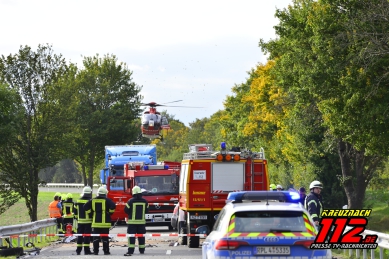 29.09.2017 Schwerer Verkehrsunfall bei Wallertheim Reportage Thorsten Gerhardt Am heutigen Freitagmittag gegen 15:20 Uhr kam es zu einem schweren Verkehrsunfall auf der B420 in höhe Wallertheim. Ein missglücker Überholversuch ist wohl die Unfallursache auf der Strecke von Gau-Bickelheim nach Wallertheim. Der 62-jährige Fahrer eines Mercedes-Geländewagens aus der Nähe von Bad Kreuznach hatte zum Überholen angesetzt und fuhr frontal gegen zwei entgegenkommende Autos. Ein 43-jähriger wurde dabei verletzt, ein weiterer 54-jähriger Fahrer wurde dabei lebensgefährlich verletzt und war in seinem VW-Wagen eingeklemmt. Die Feuerwehren aus Wörrstadt, Wallertheim, Gau-Bickelheim, Gau-Weinheim und Wöllstein waren im Einsatz. Die erst eintreffende Feuerwehr Gau-Bickelheim befreite den schwer verletzten, mittels hydraulischem Rettungsgerät aus seinem Fahrzeug. Der Kreisfeuerwehrinspekteur Michael Matthes machte sich vor Ort ein überblick der Lage, zusammen mit Wehrleiter Ernst Schön (VG Wöllstein) und Wehrleiter Thomas Waldmann (VG Wörrstadt). Im Einsatz war der Rettungsdienst, Organisatorischer Leiter Rettungsdienst, Leitender Notarzt und zwei Rettungshubschrauber aus Mainz und Mannheim. Ein Gutachter wurde hinzugezogen zur Unfallaufnahme. Die Strecke war mehrere Stunden voll gesperrt.